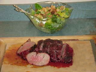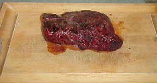 Beef Tenderloin #1 Pictured is a beef tenderloin that came mail order from Ackerman&Cooke. This is about 1/3 of the whole tenderloin - approx 2 lbs. The loin below I did indirect - this one was direct over the fire. I seared it at 600 deg and then lowered the Egg temp to 350 and cooked until done. Time was approx 30-40 min of cooking time. |